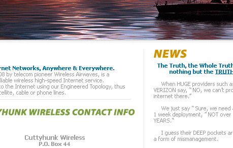 Cuttyhunk Wireless About Us Contact Us Adventures With Us Join Now! Cuttyhunk Wireless Technical Support Cuttyhunk Wireless News